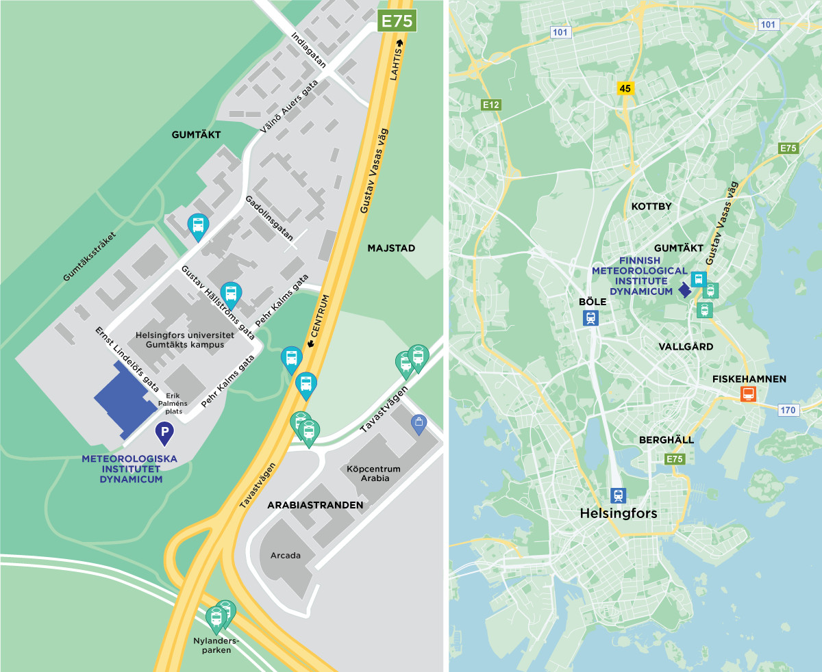 Tågen stannar också i Pasila, som ligger bara 2 kilometer från Dynamicum. Ni kan promenera eller ta spårvagnen 13 eller bussen 506.