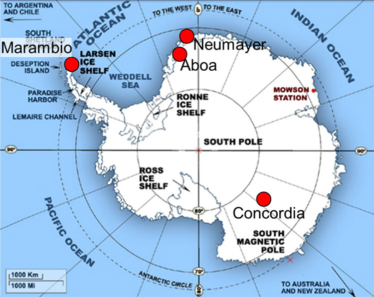 FMI och Institutet för Atmosfärforskning (INAR) vid Helsingfors Universitet har samarbetat inom forskning om Antarktis redan i två årtionden. Utöver forskning vid den Finländska forskningsstationen Aboa har grupperna medverkat i forskning vid tre övriga forskningsstationer på Antarktis som skiljer sig markant från varandra vad beträffar naturligt förekommande miljöer: den tyska forskningsstationen Neumayer nära kusten i Drotning Maud Land, den argentinska forskningsstationen Marambio vid den nordliga spetsen på en ö nära den Antarktiska halvön som vetter mot Sydamerika, samt Concordia.